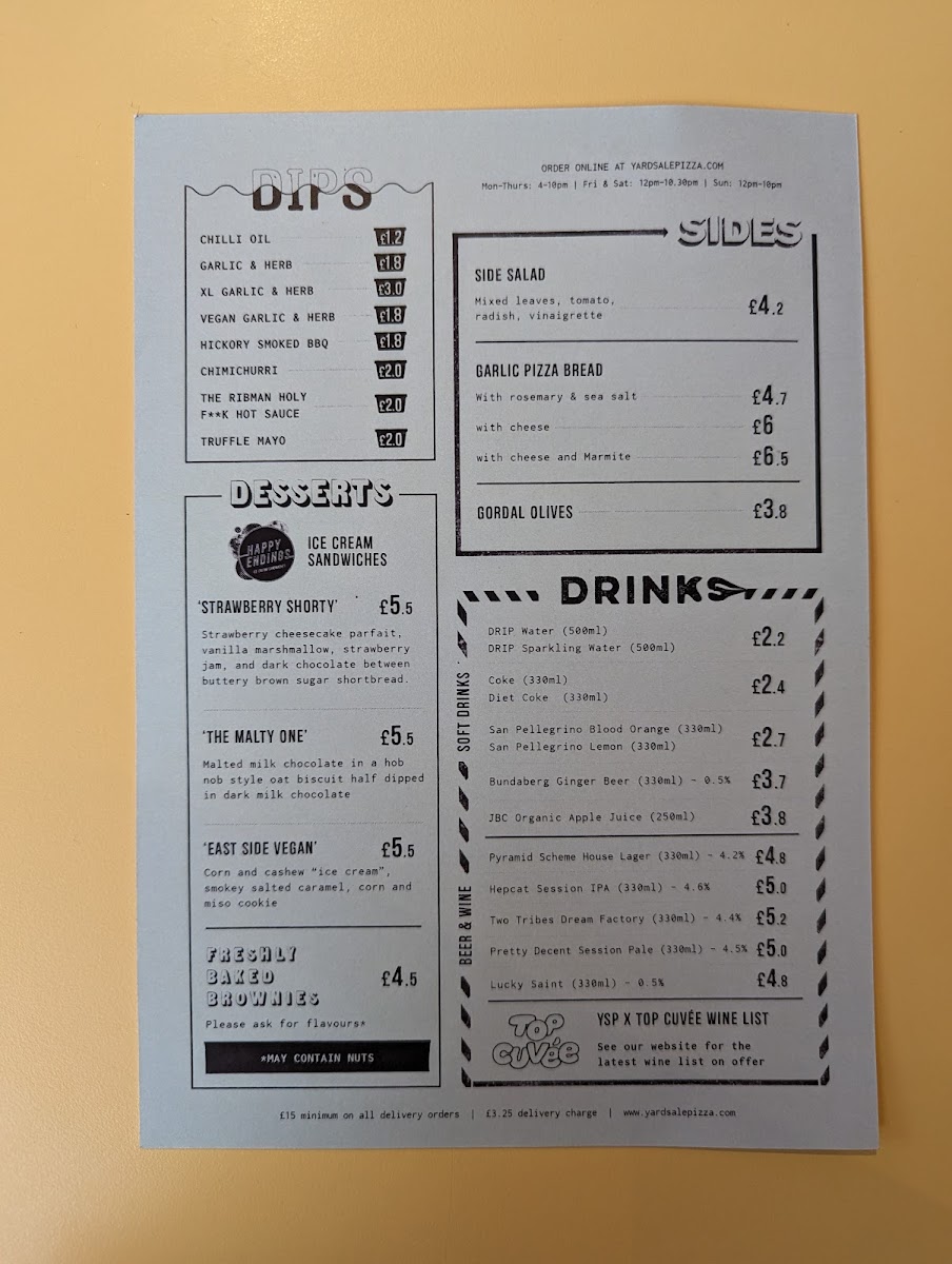 Welcome to Yard Sale Pizza - 46 Westow Hill, where artisan flavors meet vibrant community spirit. Nestled in the heart of Crystal Palace, this delightful pizzeria invites you to explore a menu brimming with mouthwatering options. The lineup includes classic Margherita and Holy Pepperoni, alongside unique creations like the Herb Your Enthusiasm and Texas Vbq for vegan lovers.